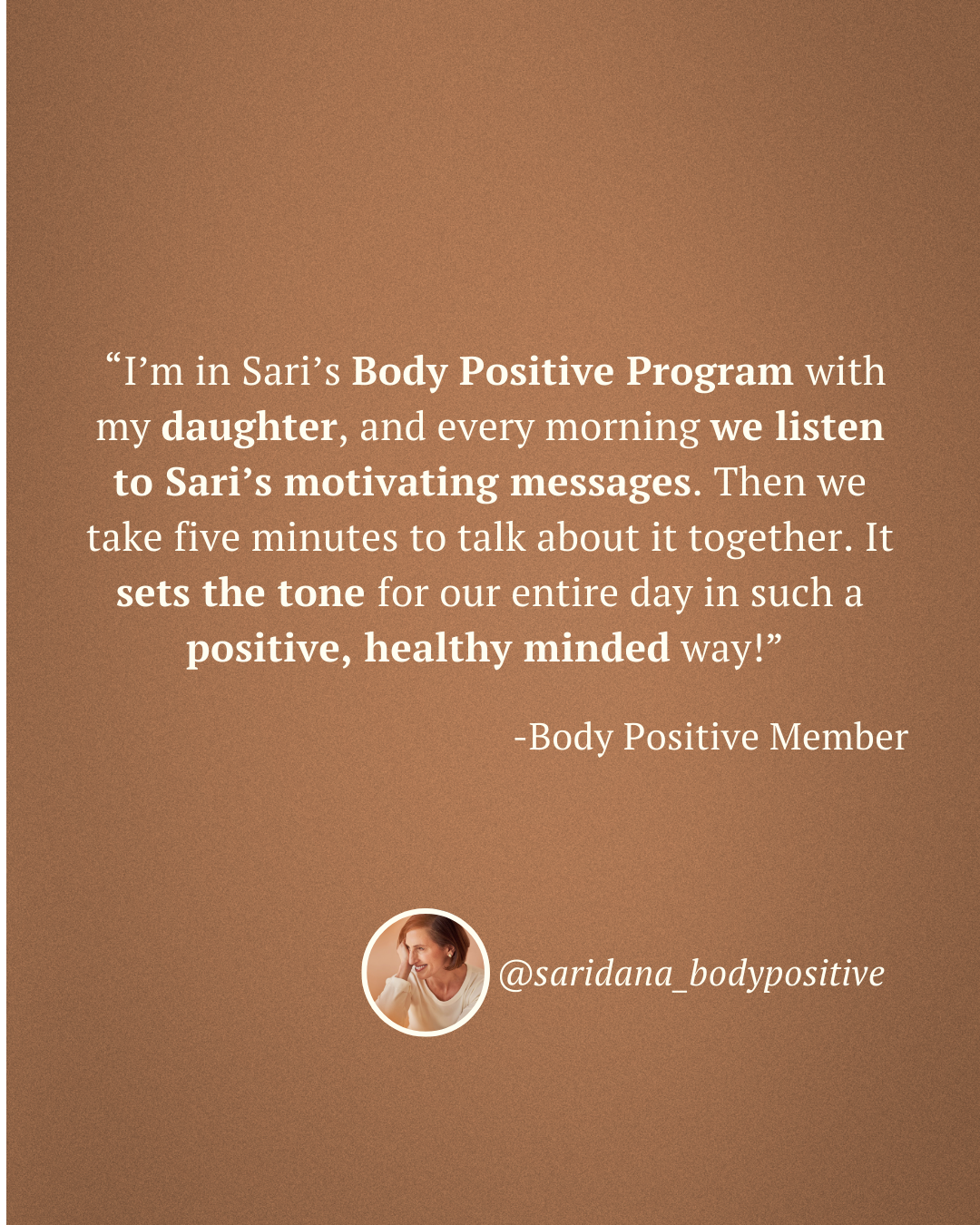 Share Your Body Positive Wins Here! My mission is to help empower girls and women to accept their bodies and to recognize the toxic harmful effects of diet culture! I am inspired to change the cycle for us. Testimonials